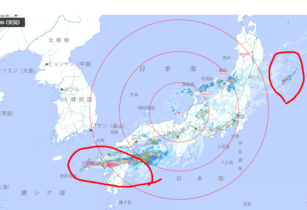 19시 50분까지 1시간 동안 약 110mm의 맹렬한 비 - 후쿠오카현 우키하시 부근 & 오이타현 히타시 부근